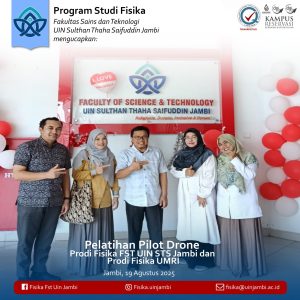 Jambi, 19 Agustus 2025 – Laboratorium Fisika Fakultas Sains dan Teknologi (FST) UIN Sulthan Thaha Saifuddin Jambi menjadi pusat kolaborasi akademik pada Selasa (19/8). Program Studi Fisika UIN Jambi bekerja sama dengan Program Studi Fisika Universitas Muhammadiyah Riau (UMRI) mengadakan pelatihan bersama pilot drone yang diikuti dosen dari kedua kampus.dan