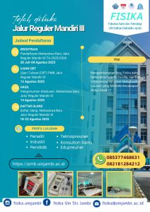 Assalamu’alaikum putra/I terbaik Indonesia, mari bergabung dg Prodi Fisika Fst Uin Jambi , ditunggu di Jambi Kampus UIN Sulthan Thaha Saifuddin Jambi , jangan ketinggalan, catat tanggalnya. 10 pendaftar pertama UKT Rp. 400.000 per semester. Ayo buruan!!