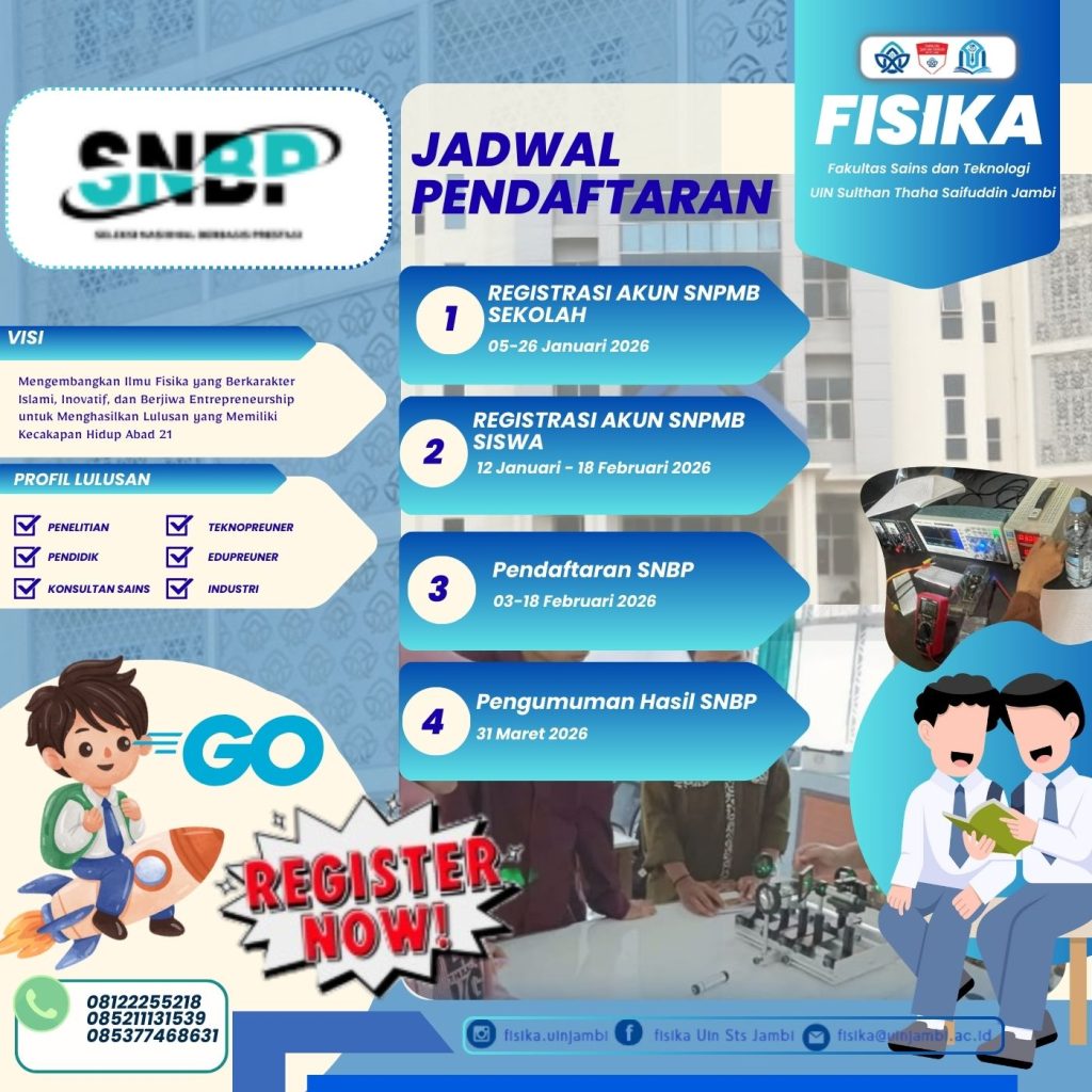 Informasi Penerimaan Mahasiswa Baru Program Studi Fisika FST UIN Jambi melalui Jalur SNBP Tahun 2026