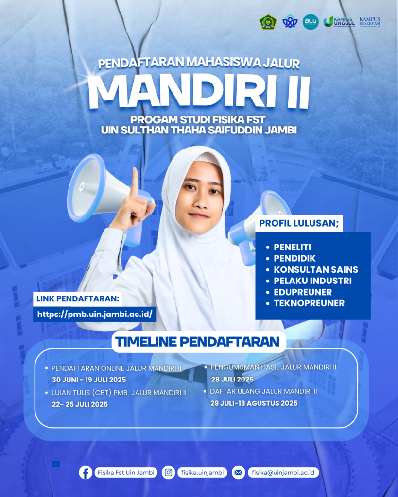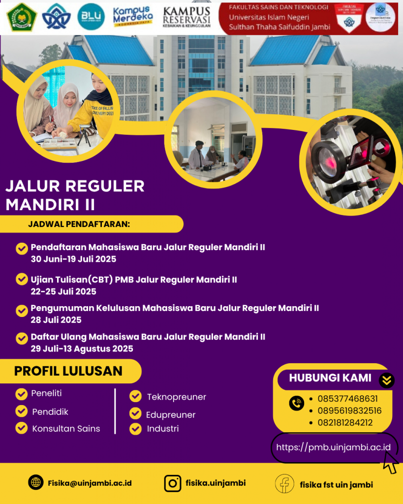 Informasi Penerimaan Mahasiswa Baru Program Studi Fisika FST UIN Jambi melalui jalur UTBK – SNBT Tahun 2026 Wednesday, April 1, 2026