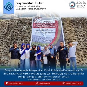 Prodi Fisika beserta rombongan FST ikut serta dalam kegiatan Pengabdian kepada Masyarakat (PkM) kolaborasi internasional pada acara SEIBA International Festival: Diversity of Malay Culture di Sungai Bangek Kota Padang. Festival ini berlangsung pada Tanggal 23 – 27 September 2024 dengan tuan rumah UIN Imam Bonjol Padang.