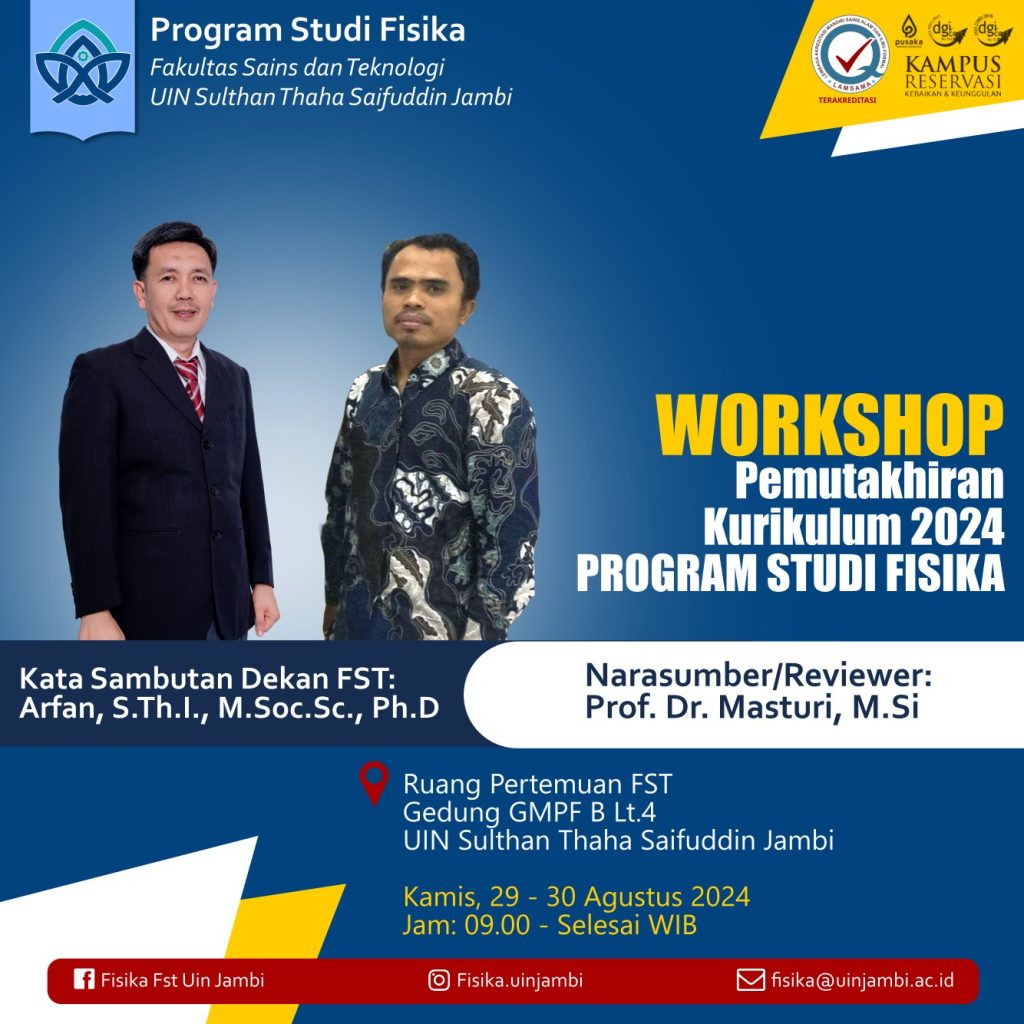 Informasi Penerimaan Mahasiswa Baru Program Studi Fisika FST UIN Jambi melalui jalur UTBK – SNBT Tahun 2026 Wednesday, April 1, 2026